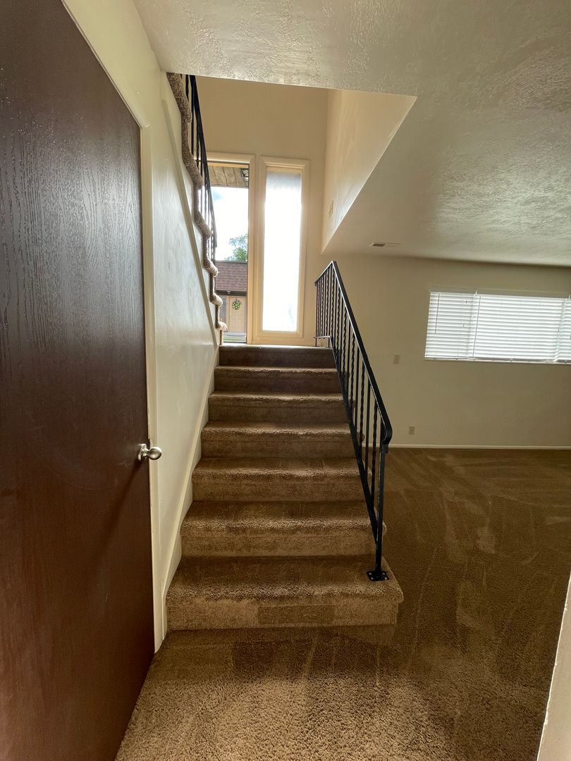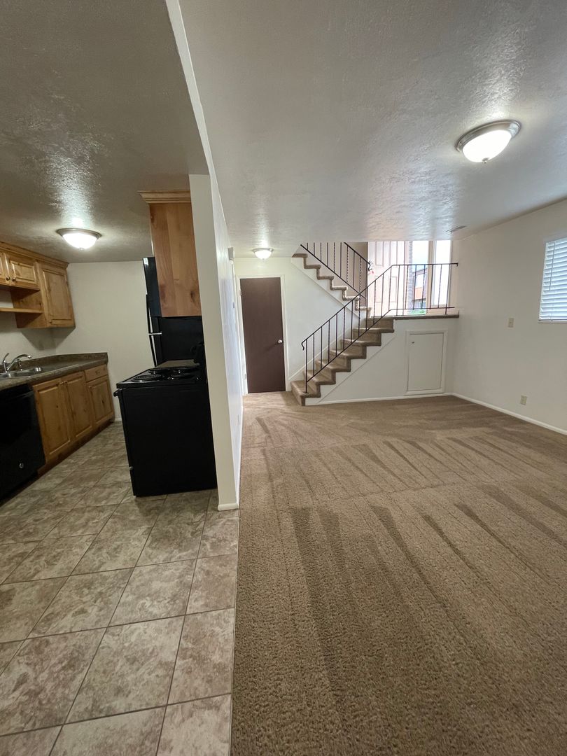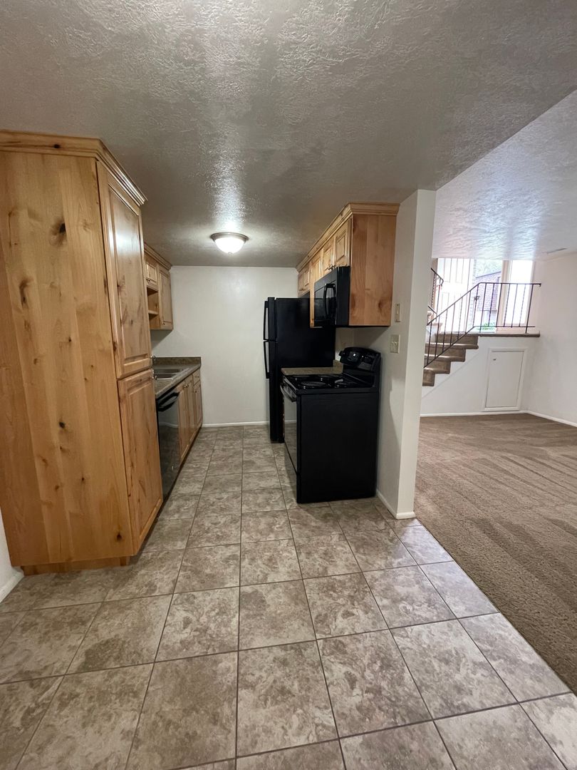This unit comes a fridge, stove, dishwasher, microwave, extra storage under the stairs and internet. Tenants are responsible for gas and electric.
