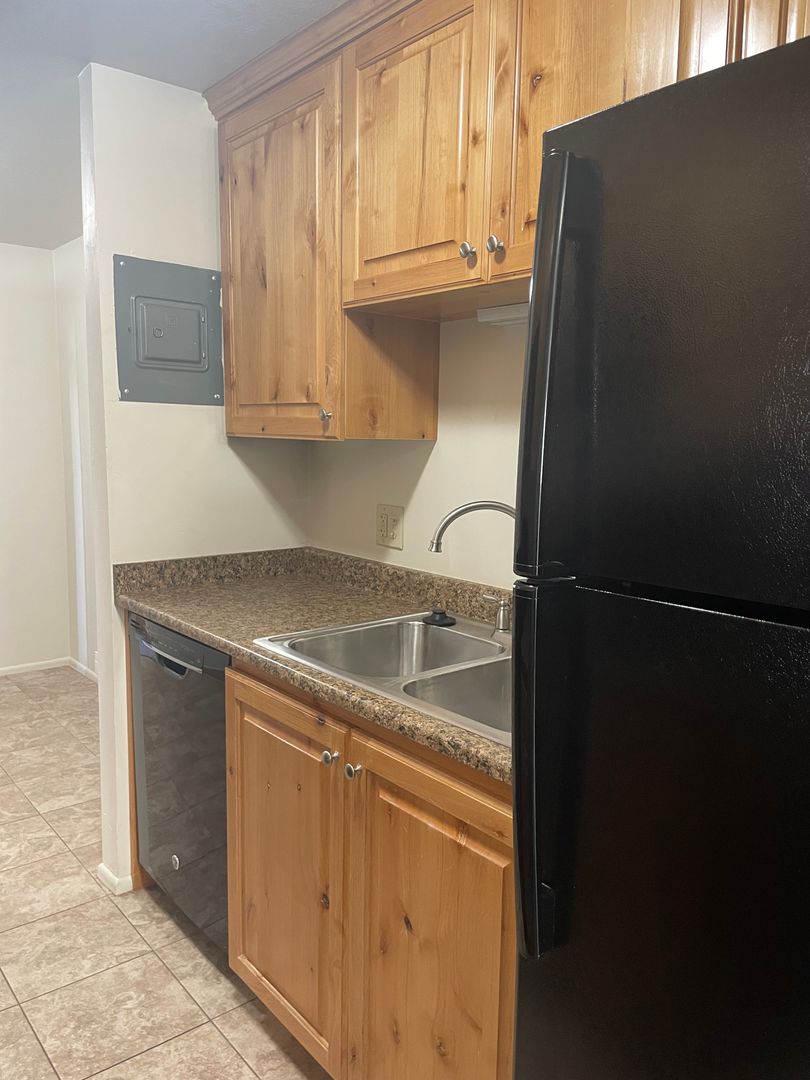 1 Bedroom, 1 Bathroom apartment. The unit comes with a fridge, stove, microwave, dishwasher and internet. There are coin op laundry machines in the buildings, there are no hook ups in the unit.