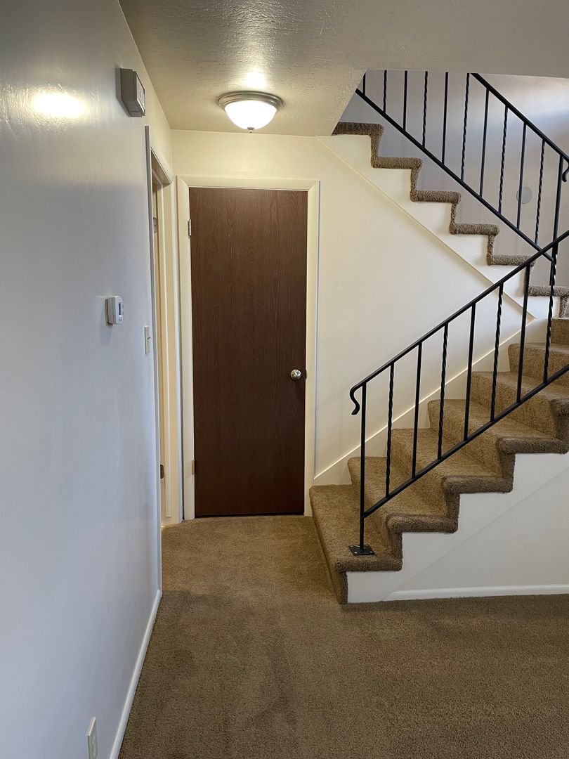 This unit comes a fridge, stove, dishwasher, microwave, extra storage under the stairs and internet. Tenants are responsible for gas and electric.