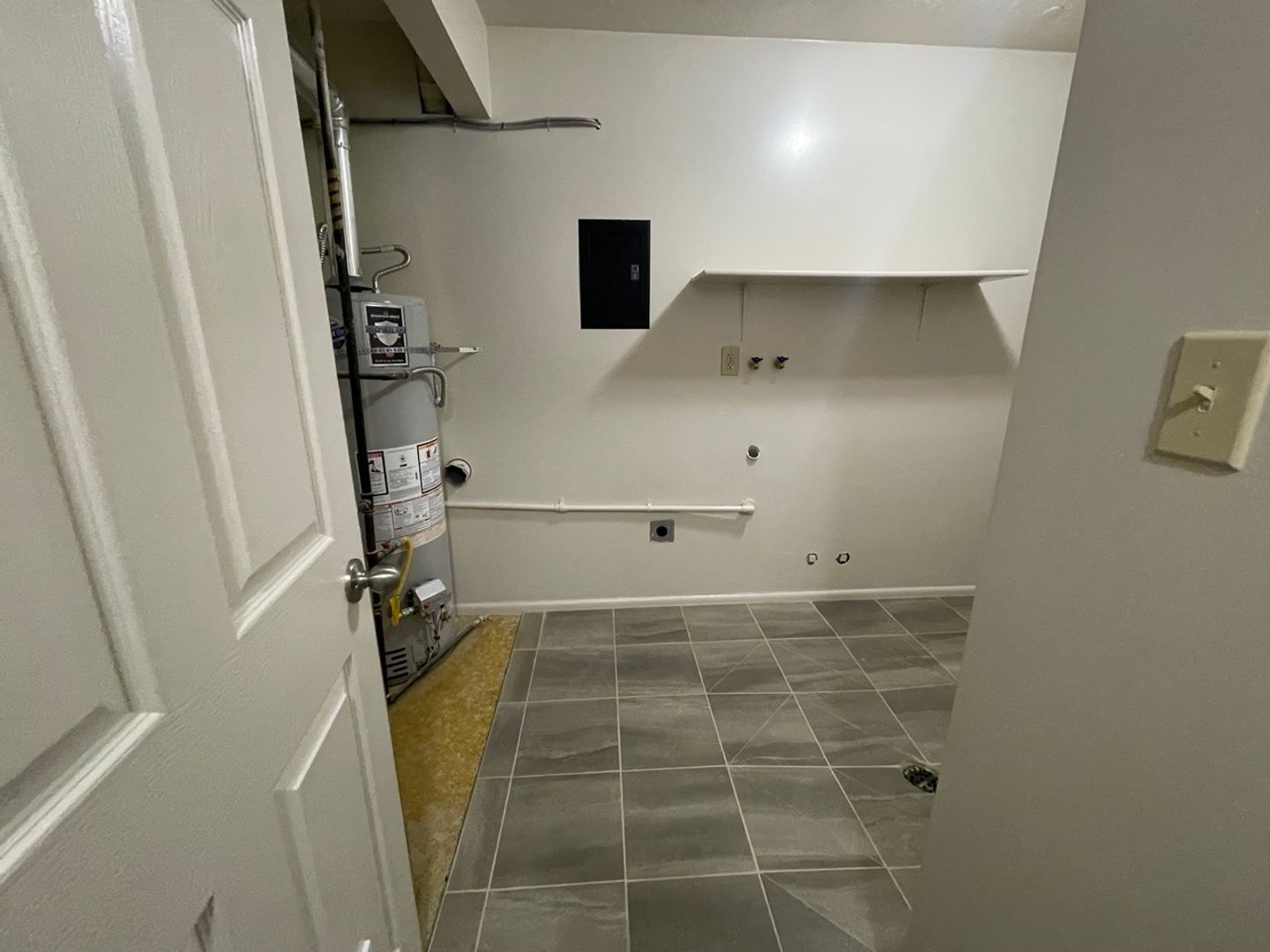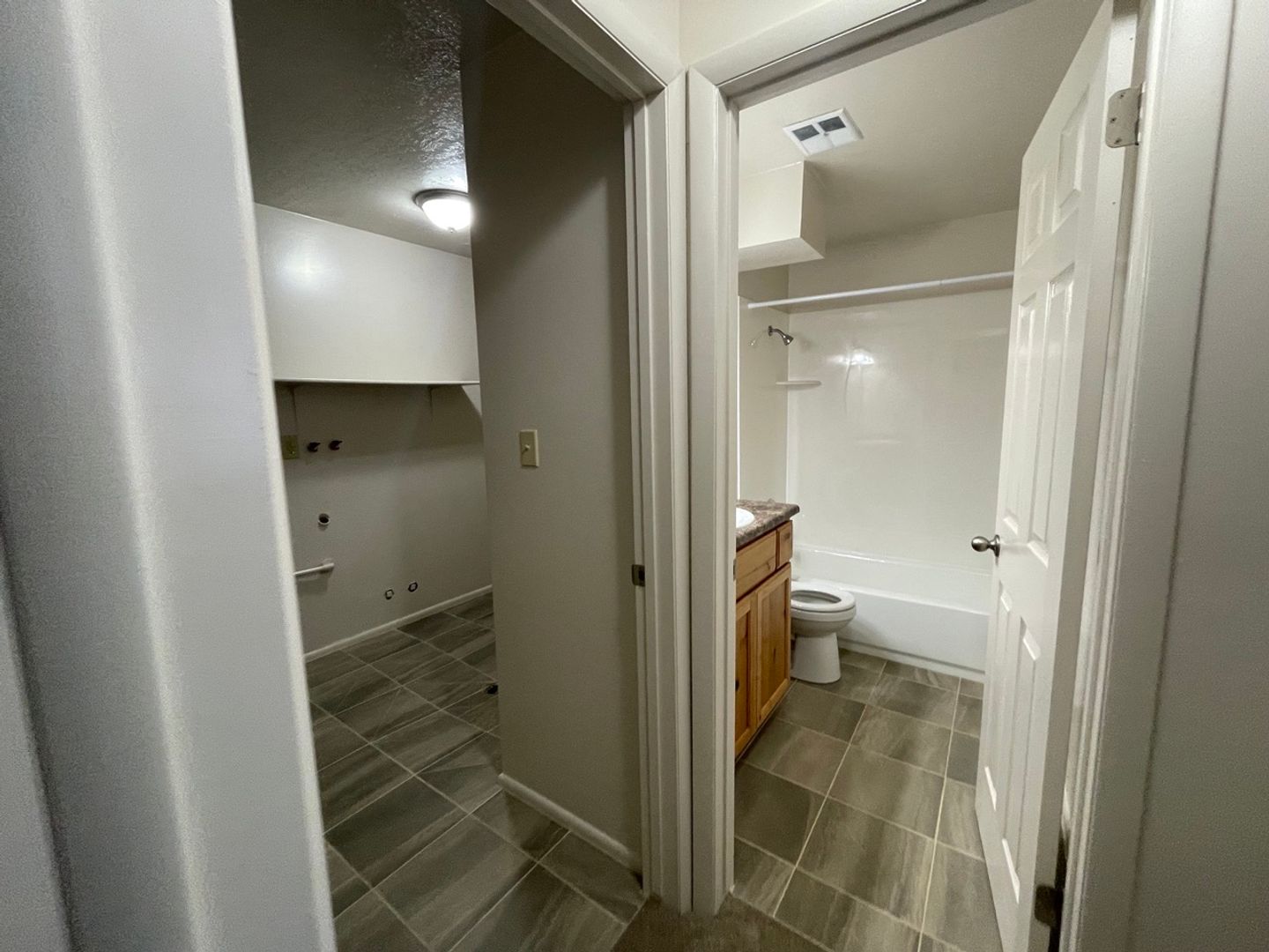 The unit comes with internet, fridge, microwave, dishwasher, stove, and washer and dryer hookups.