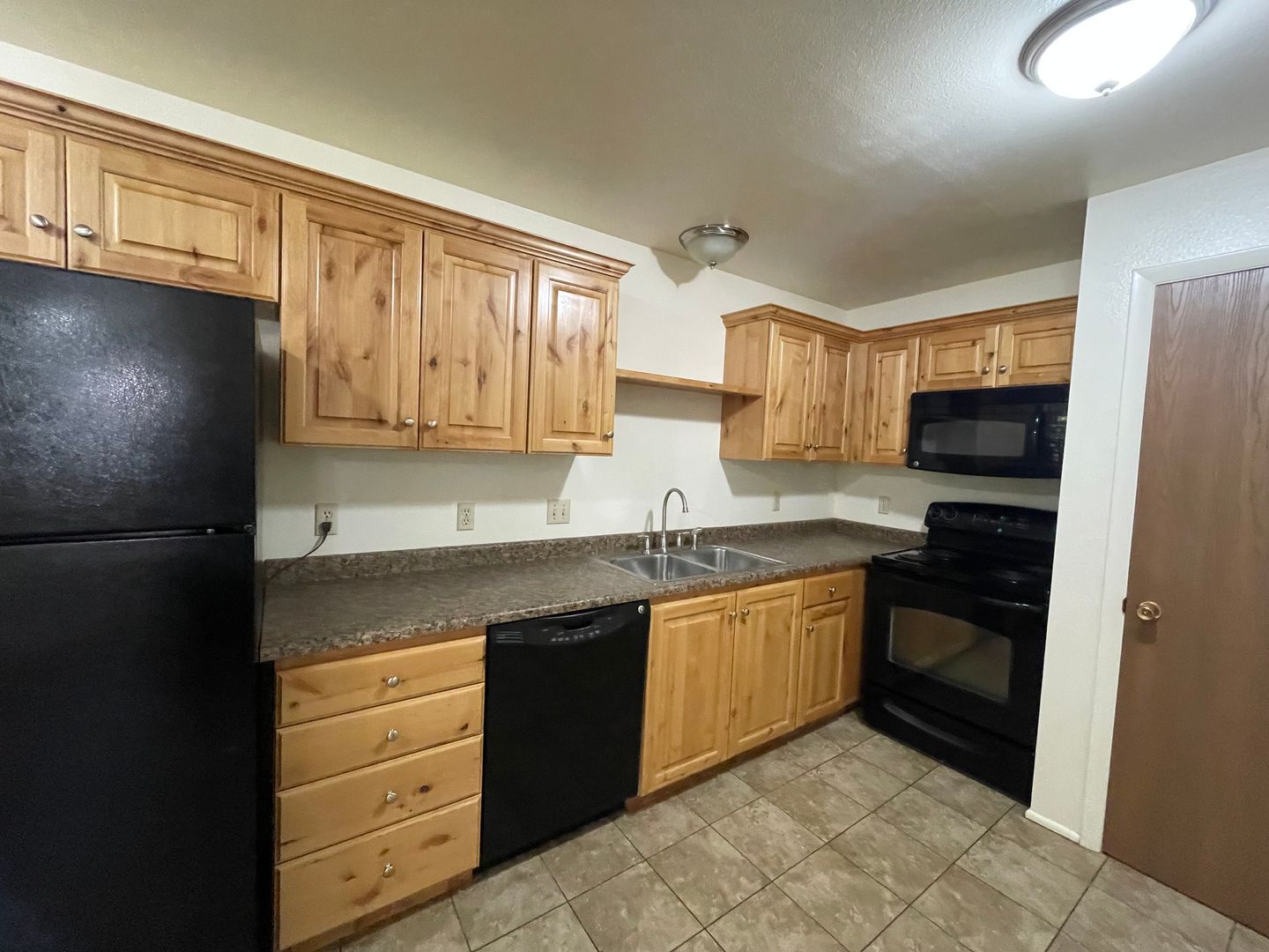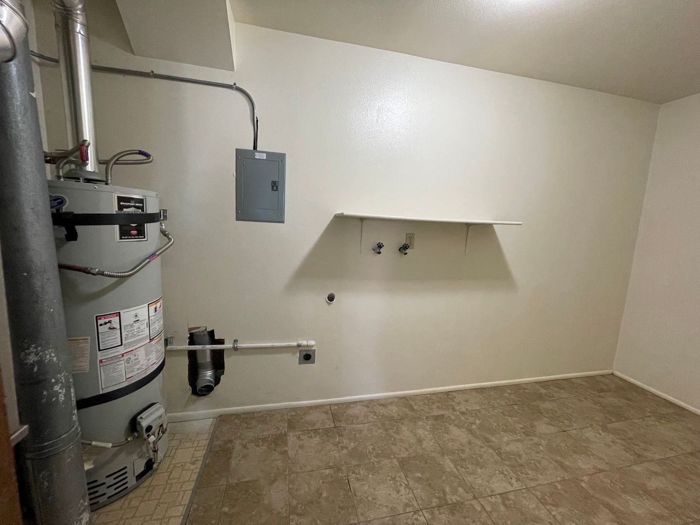 The unit comes with internet, fridge, stove, dishwasher, microwave, and washer and dryer hookups.