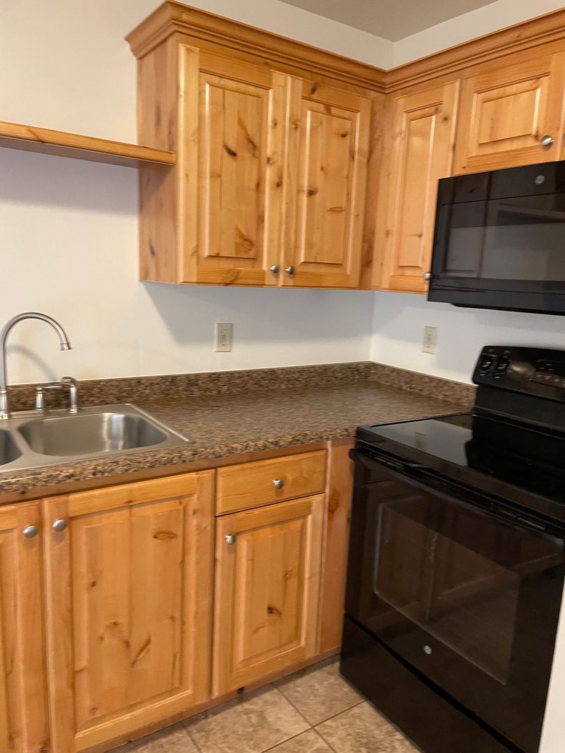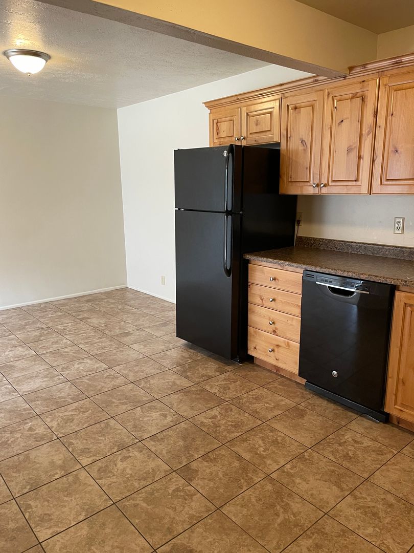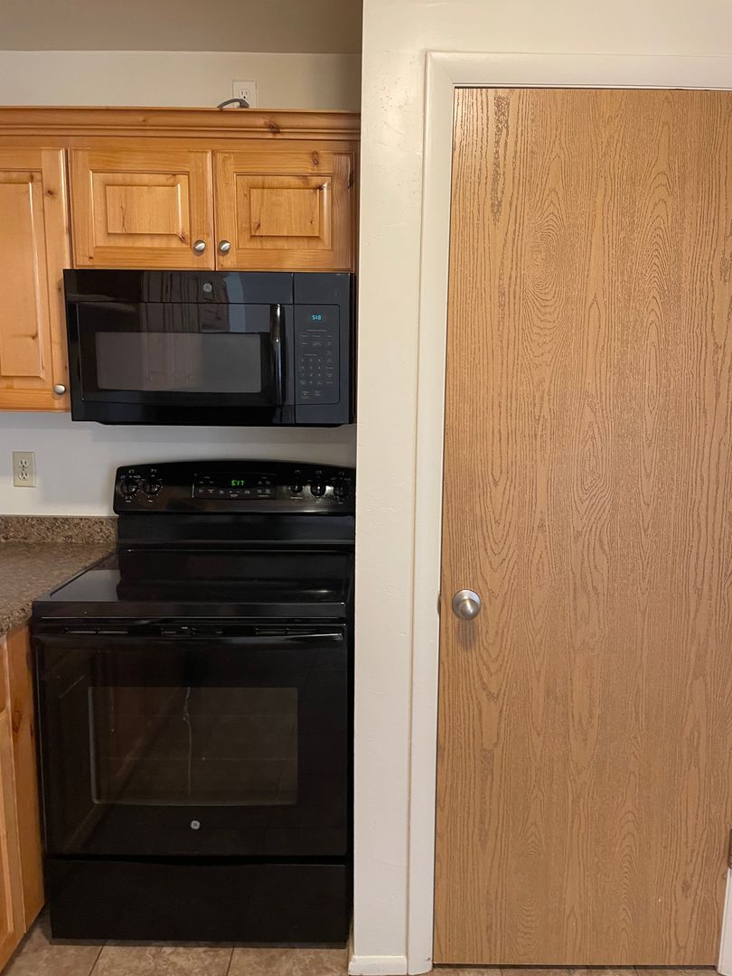 This unit comes with a fridge, stove, oven, microwave, dishwasher, washer and dryer hook ups, and internet.